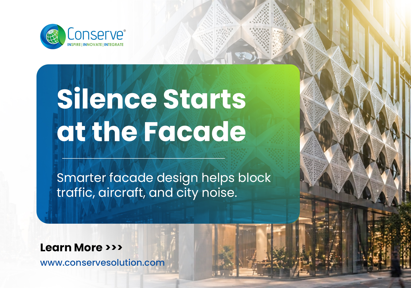 Conserve Solution provides acoustic design support for facades, interiors, and sensitive spaces – from noise control analysis to practical, buildable solutions that improve speech privacy and occupant comfort.