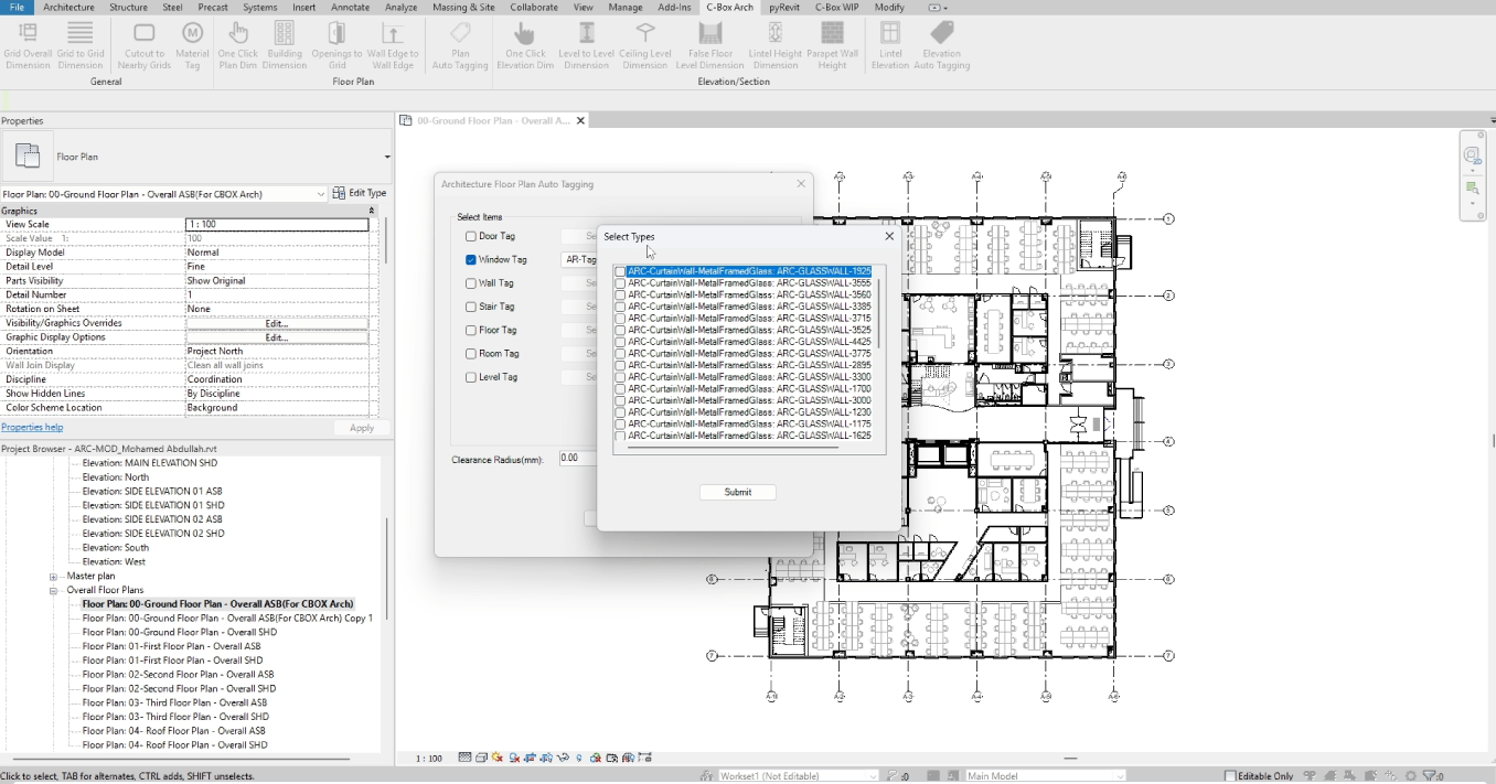 • The workflow identifies model elements within active views and automatically applies predefined annotation rules. These rules determine tag placement, dimension alignment, and offsets based on element type and orientation.