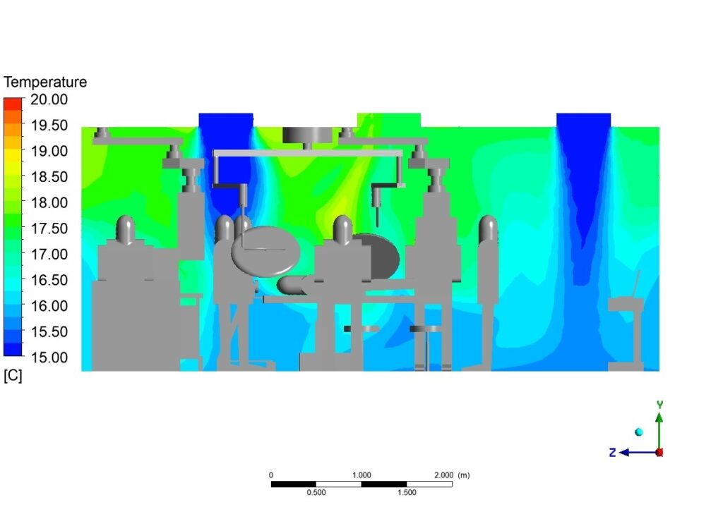 A comprehensive study for the hospital, analyzing airflow patterns in Ultra-Clean Ventilation (UCV) zones and auxiliary cleanrooms to maintain a sterile environment and peak operational safety.